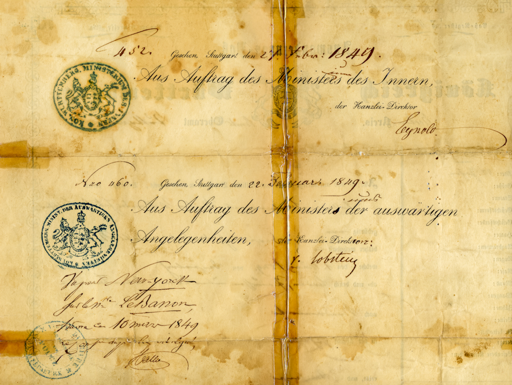 Katharina Barbara (Reiser) Lutscher passport [back side], 27 February 1849.